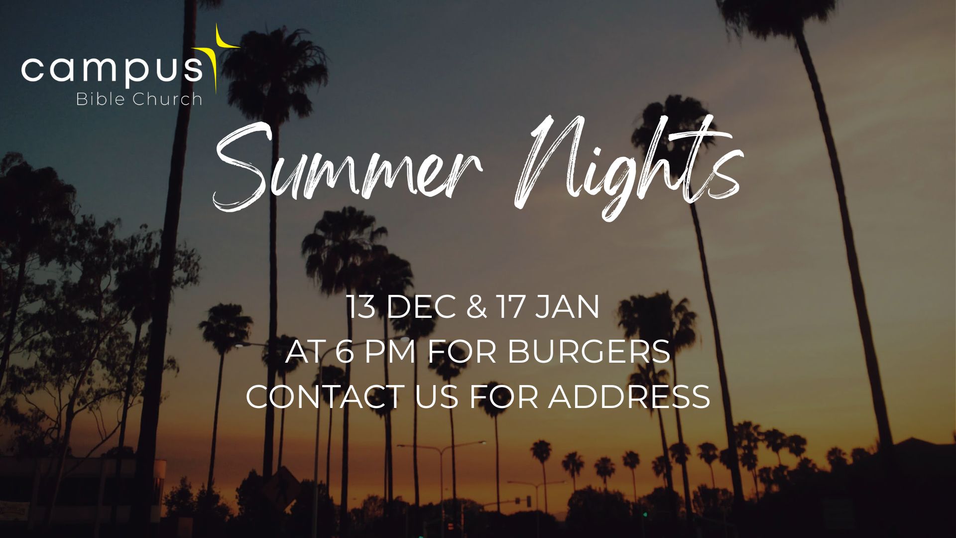 Join us for burgers on a chill summer night - 13 Dec and 17 Jan - from 6pm. Contact us for address.